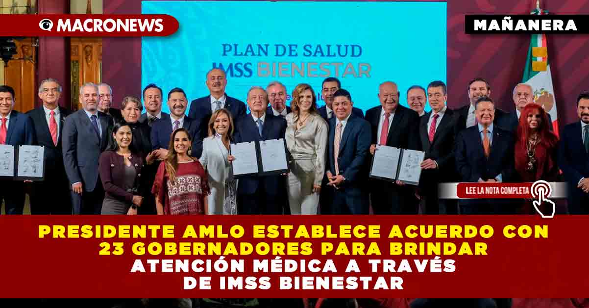 CIUDAD DE MÉXICO (apro).— Gobernadores de 23 estados y el presidente Andrés Manuel López Obrador firmaron el acuerdo nacional de la federalización de los servicios de salud, con la finalidad de que 53.2 millones de personas sean atendidas por el IMSS Bienestar.