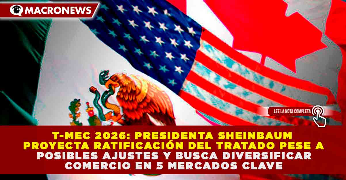 T-MEC 2026: SHEINBAUM PROYECTA RATIFICACIÓN DEL TRATADO PESE A POSIBLES AJUSTES Y BUSCA DIVERSIFICAR COMERCIO EN 5 MERCADOS CLAVE