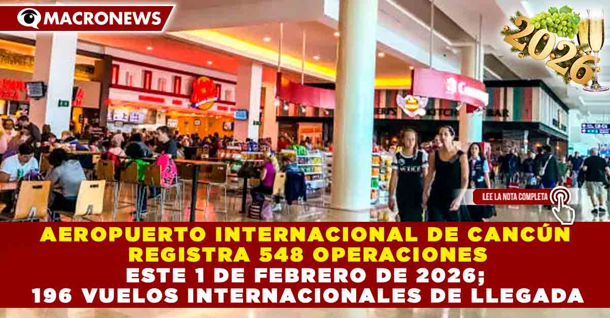 Redacción Macronews.- El Aeropuerto Internacional de Cancún (AIC) mantiene una intensa actividad aérea este sábado 1 de febrero de 2026, al tener programadas 548 operaciones, consolidándose como uno de los principales centros de conectividad aérea de México y América Latina, pese a las condiciones climáticas registradas en la región.