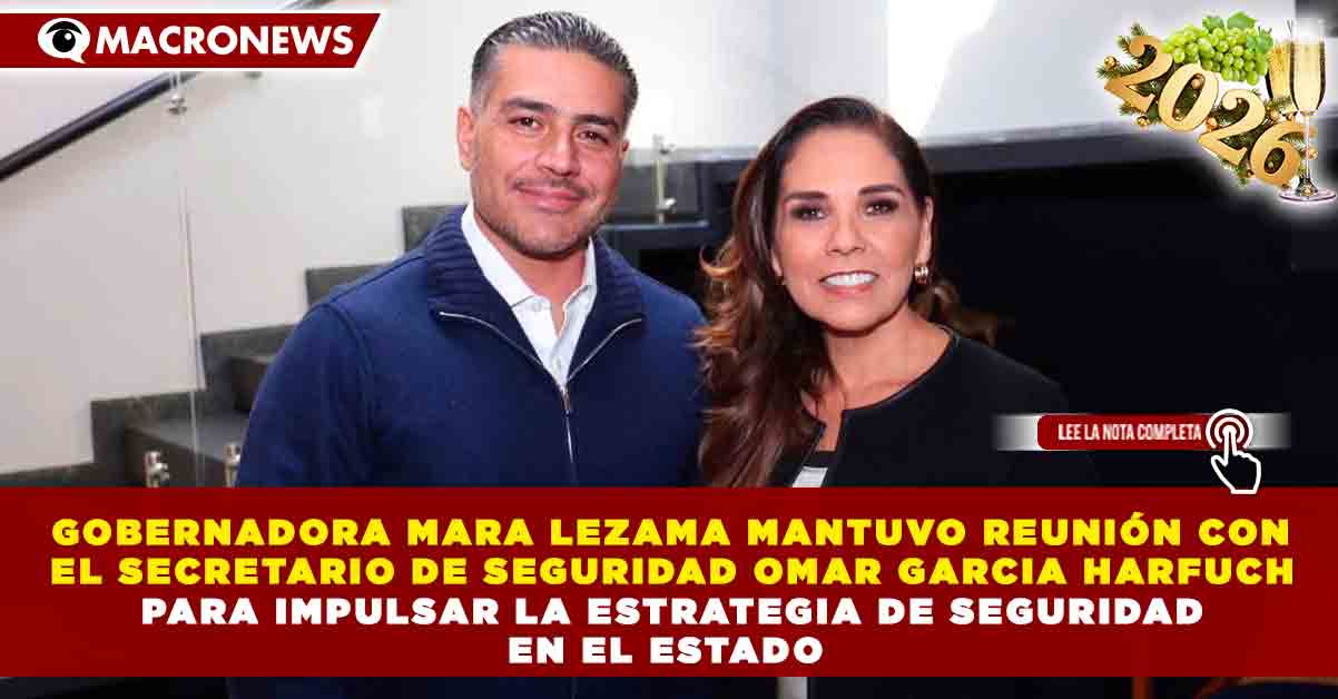 Redacción Macronews.- La gobernadora de Quintana Roo, Mara Lezama, sostuvo una reunión de trabajo con Omar García Harfuch, secretario de Seguridad y Protección Ciudadana, para dar seguimiento a la Estrategia Nacional de Seguridad en la entidad y reforzar la coordinación entre los tres órdenes de gobierno, destacando resultados positivos en la disminución de la violencia.