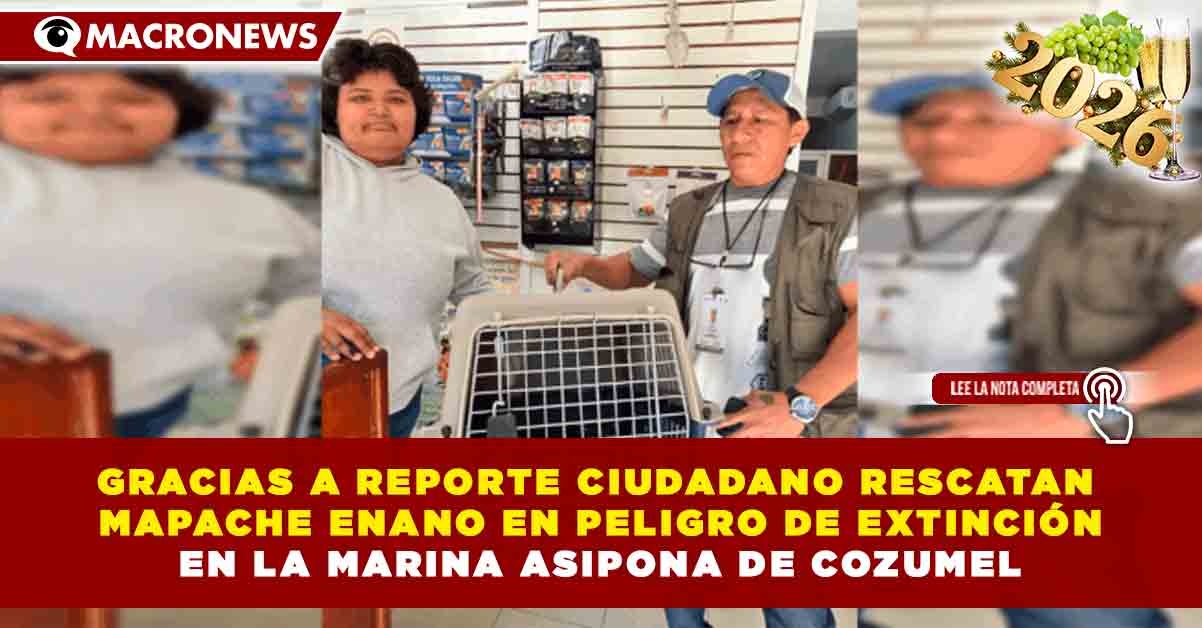 Redacción Macronews.- Gracias al apoyo y reporte oportuno de la ciudadanía, el Gobierno Municipal de Cozumel, a través de la Subdirección de Ecología, logró el rescate de un mapache enano, especie endémica de la isla y actualmente en peligro de extinción, luego de que quedara atrapado debajo de diversas embarcaciones en la Marina ASIPONA.