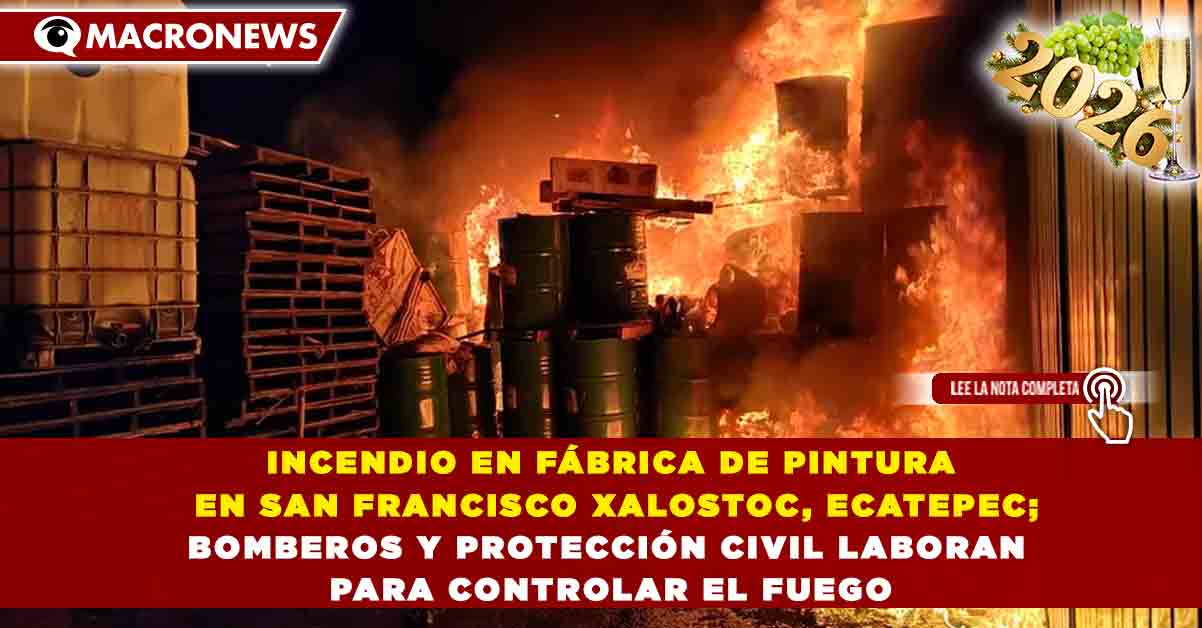 Redacción Macronews.- Ecatepec, Morelos, 23 de enero de 2026.- Esta noche se registró un incendio de gran magnitud en una fábrica de pintura ubicada en San Francisco Xalostoc, confirmó la presidenta municipal de Ecatepec.