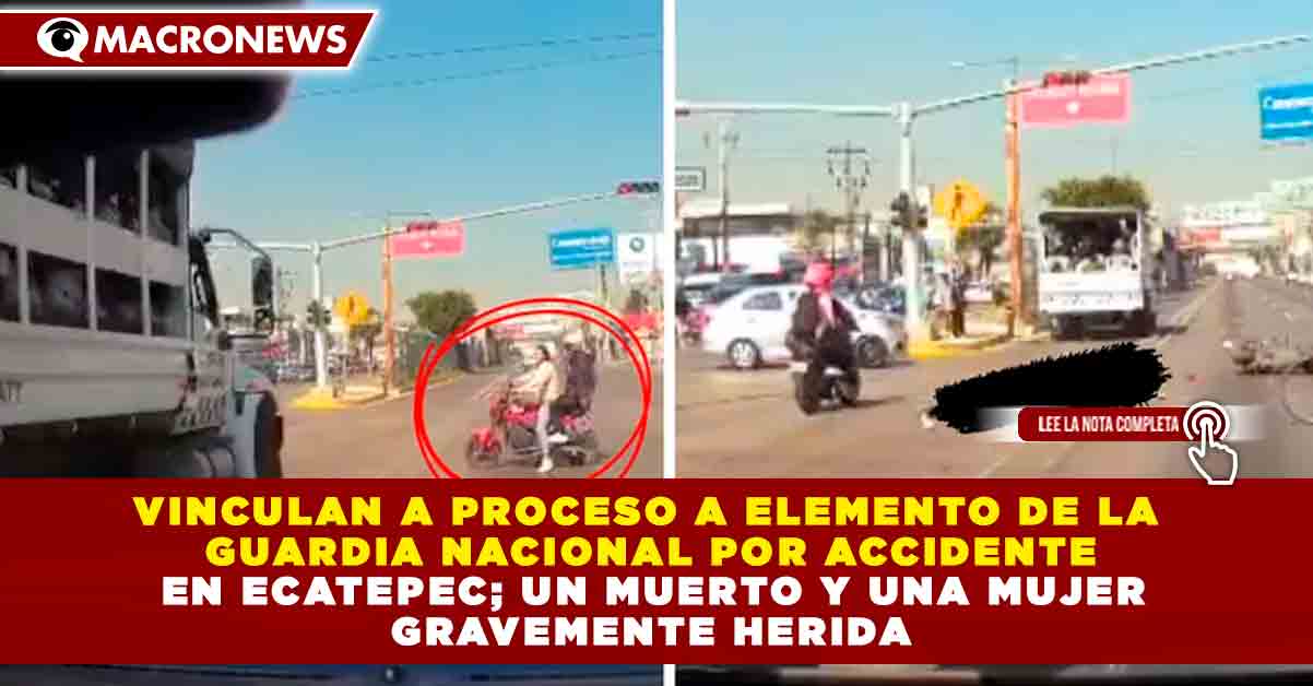 Redacción Macronews.- Un elemento de la Guardia Nacional (GN) fue vinculado a proceso por su presunta responsabilidad en un accidente vial ocurrido en Ecatepec, Estado de México, que dejó como saldo un motociclista fallecido y una mujer de 25 años gravemente herida, luego de que un vehículo oficial se pasara la luz roja del semáforo en una de las avenidas más transitadas de la zona.