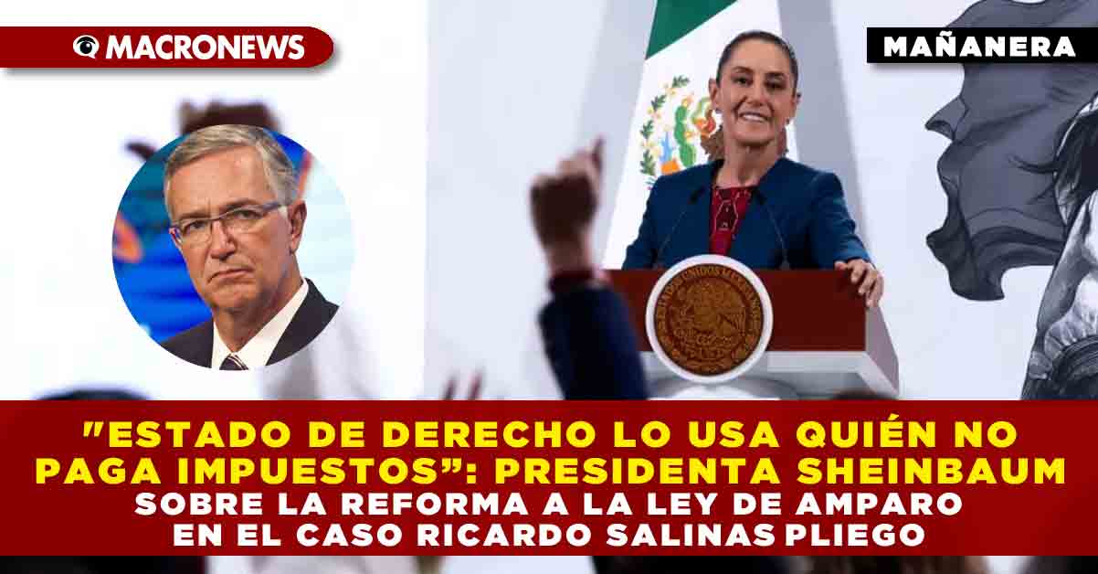 Redacción Macronews.- En la conferencia matutina de este 22 de octubre, la presidenta Claudia Sheinbaum afirmó que la palabra clave “estado de derecho” se ha convertido en un recurso para quienes evaden impuestos y evitan rendir cuentas. Al referirse al empresario Ricardo Salinas Pliego, subrayó que “la ley ya no está a favor de quien no paga impuestos” y defendió la reforma a la Ley de Amparo como ejemplo del principio juarista: “nada ni nadie por encima de la ley”.