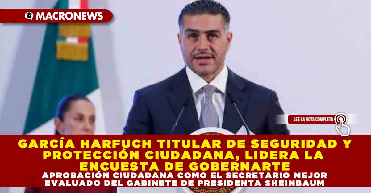 REDACCIÓN MACRONEWS.- A nueve meses del inicio del gobierno de Claudia Sheinbaum, una encuesta nacional posiciona a Omar García Harfuch, secretario de Seguridad y Protección Ciudadana, como el funcionario mejor evaluado del gabinete presidencial. De acuerdo con el estudio realizado por GobernArte entre el 20 de agosto y el 1 de septiembre de 2025, con una muestra de 1,073 personas y un nivel de confianza del 95%, García Harfuch obtuvo 66% de aprobación, seguido por Marcelo Ebrard (59%) y Juan Ramón de la Fuente (58%).