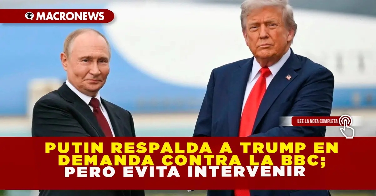 Redacción MacroNews.- El presidente ruso, Vladímir Putin, manifestó hoy su respaldo a la postura de su homólogo estadounidense, Donald Trump, respecto a la demanda por difamación interpuesta contra la cadena pública británica BBC. Durante una intervención televisada ante la prensa y la ciudadanía, Putin afirmó que «el problema de las noticias falsas y la manipulación existe; es algo evidente. Pienso que el presidente Trump tiene razón», validando así las críticas del mandatario estadounidense hacia el medio de comunicación británico.