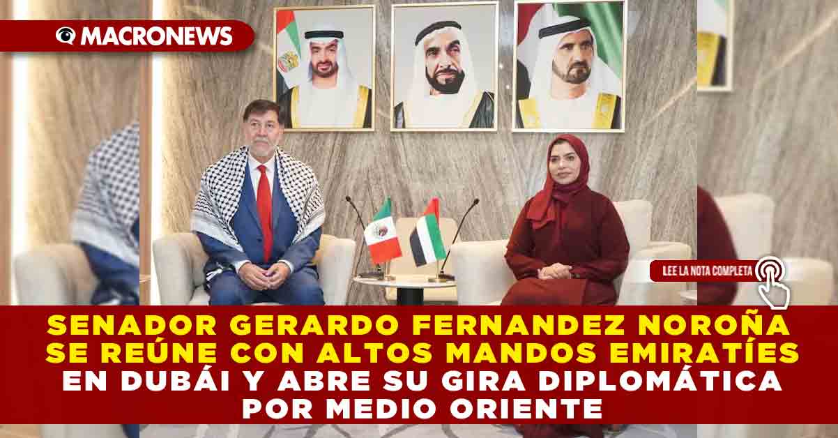 Redacción Macronews.- El senador Gerardo Fernández Noroña inició una gira en el Medio Oriente con una visita protocolaria en Dubái, donde fue recibido por Amna Alí Al Adidi, en representación del Consejo Nacional Federal de Emiratos Árabes Unidos. Posteriormente, sostuvo una llamada con el presidente del mismo consejo, Saqr Ghobash.