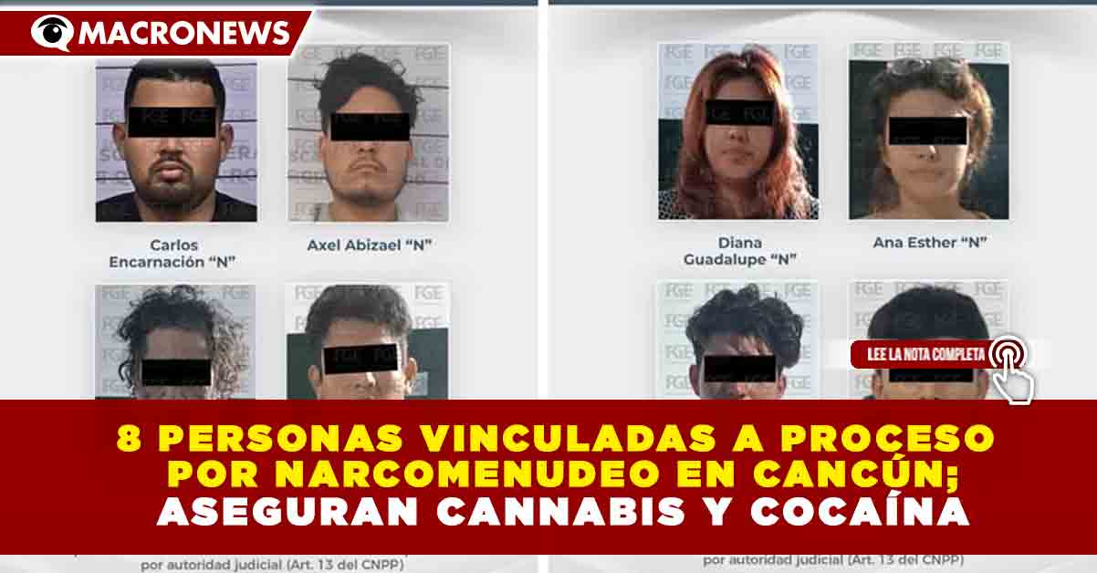 La Fiscalía General del Estado informó que ocho personas fueron vinculadas a proceso por su presunta participación en delitos contra la salud, en la modalidad de narcomenudeo, como resultado de acciones distintas realizadas en el municipio de Cancún, tras resoluciones emitidas por jueces de Control.