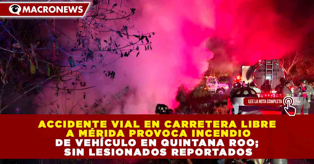 Redacción Macronews.- La Secretaría de Seguridad Ciudadana de Quintana Roo informó que esta noche se registró un accidente vial sobre la carretera libre a Mérida, a la altura del kilómetro 293, derivado del choque entre dos vehículos particulares que salieron de la cinta asfáltica.