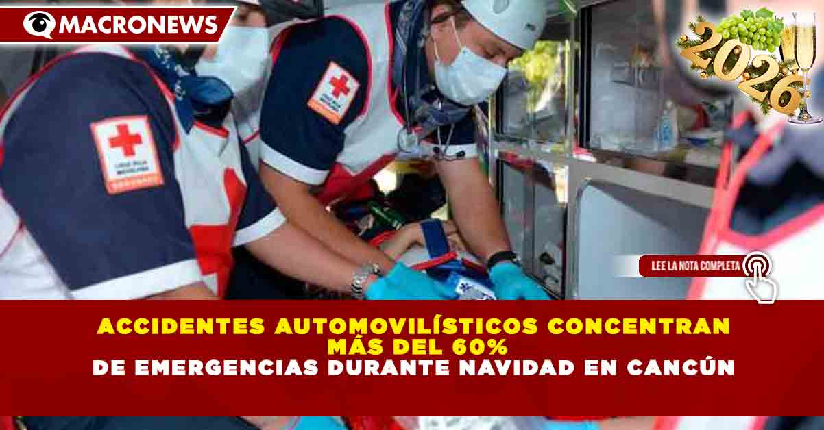 Redacción Macronews.- Los accidentes automovilísticos se posicionaron como la principal causa de emergencias durante las celebraciones de Navidad en Cancún, al concentrar más del 60% de los reportes atendidos por cuerpos de auxilio y autoridades de tránsito, de acuerdo con los primeros balances de la jornada decembrina.