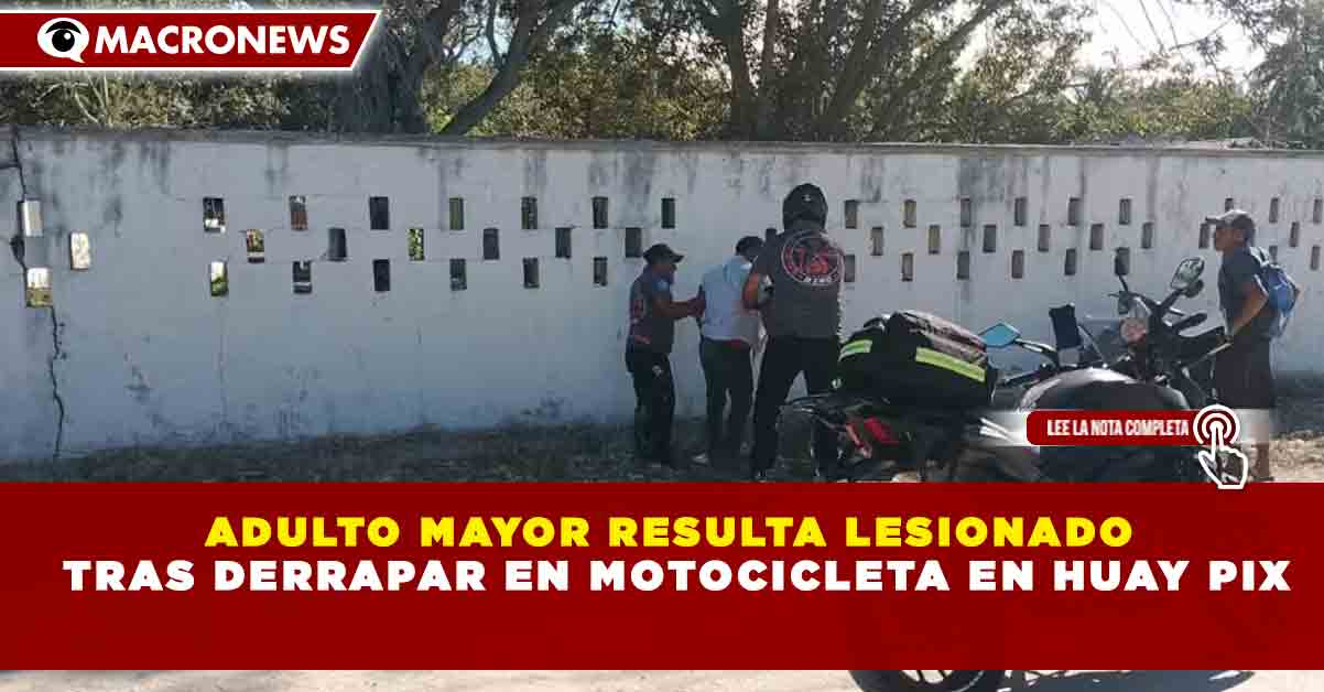 Redacción Macronews.- Un adulto mayor resultó lesionado la mañana de este viernes luego de derrapar en la motocicleta que conducía en la comunidad de Huay Pix, incidente que movilizó a cuerpos de emergencia y dejó como saldo una persona trasladada a un hospital para su valoración médica.