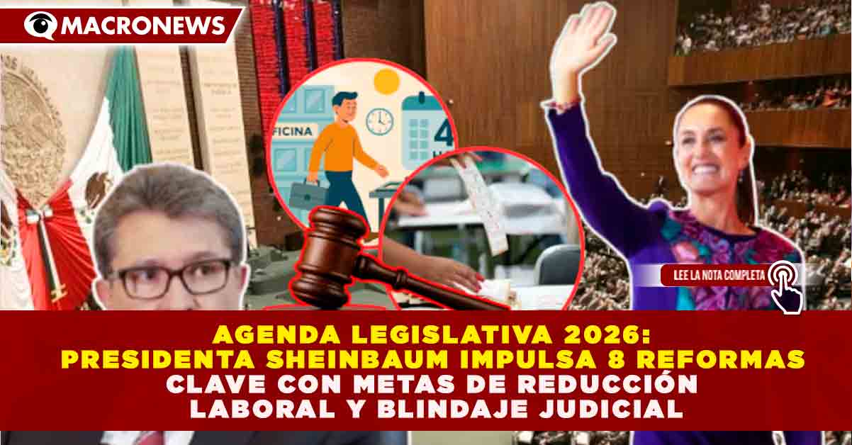 AGENDA LEGISLATIVA 2026: SHEINBAUM IMPULSA 8 REFORMAS CLAVE CON METAS DE REDUCCIÓN LABORAL Y BLINDAJE JUDICIAL
