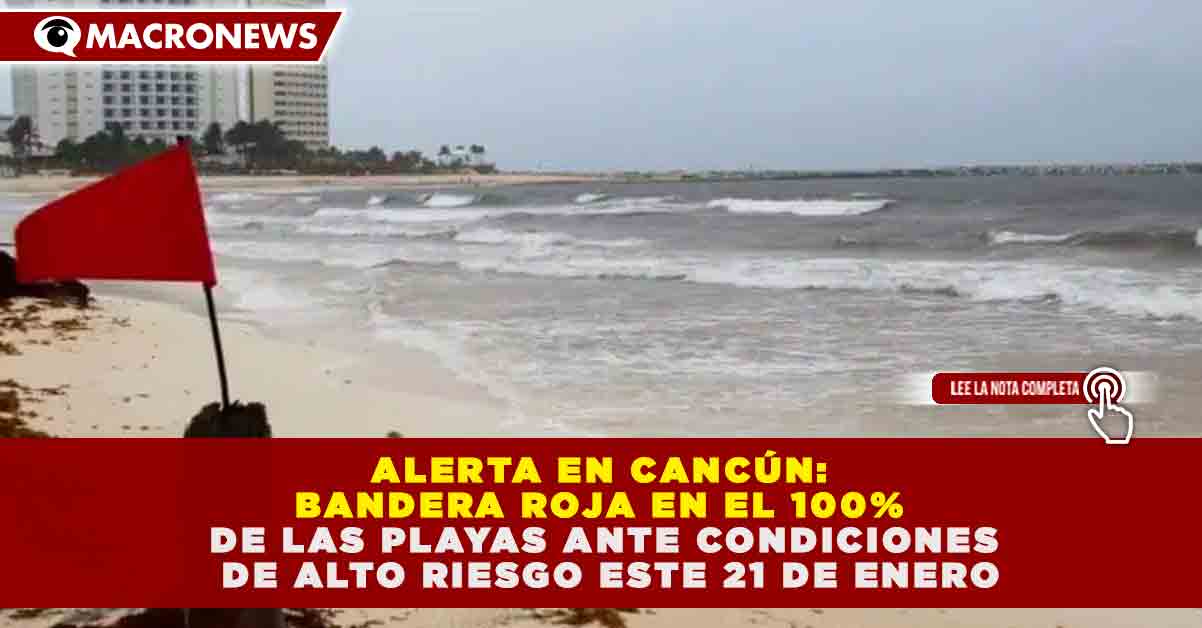 ALERTA EN CANCÚN: BANDERA ROJA EN EL 100% DE LAS PLAYAS ANTE CONDICIONES DE ALTO RIESGO ESTE 21 DE ENERO