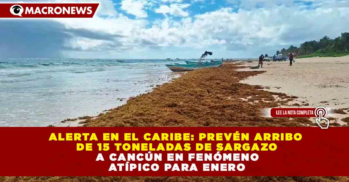 ALERTA EN EL CARIBE: PREVÉN ARRIBO DE 15 TONELADAS DE SARGAZO A CANCÚN EN FENÓMENO ATÍPICO PARA ENERO