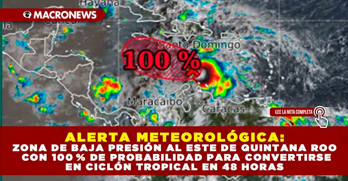 ALERTA METEOROLÓGICA: ZONA DE BAJA PRESIÓN AL ESTE DE QUINTANA ROO CON 100 % DE PROBABILIDAD DE CONVERTIRSE EN CICLÓN TROPICAL EN 48 HORAS