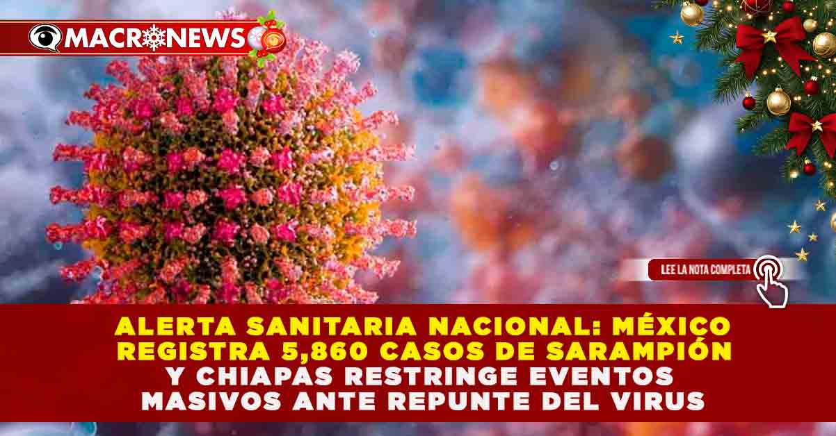 ALERTA SANITARIA NACIONAL: MÉXICO REGISTRA 5,860 CASOS DE SARAMPIÓN Y CHIAPAS RESTRINGE EVENTOS MASIVOS ANTE REPUNTE DEL VIRUS