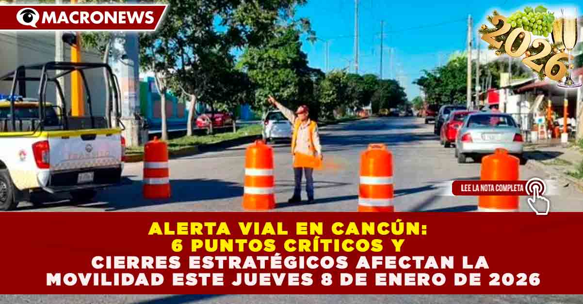 ALERTA VIAL EN CANCÚN: 6 PUNTOS CRÍTICOS Y CIERRES ESTRATÉGICOS AFECTAN LA MOVILIDAD ESTE 8 DE ENERO DE 2026