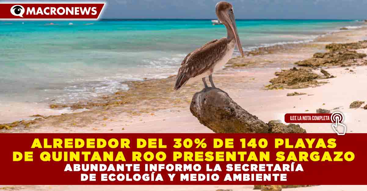 ALREDEDOR DEL 30% DE 140 PLAYAS DE QUINTANA ROO PRESENTAN SARGAZO ABUNDANTE INFORMO LA SECRETARÍA DE ECOLOGÍA Y MEDIO AMBIENTE