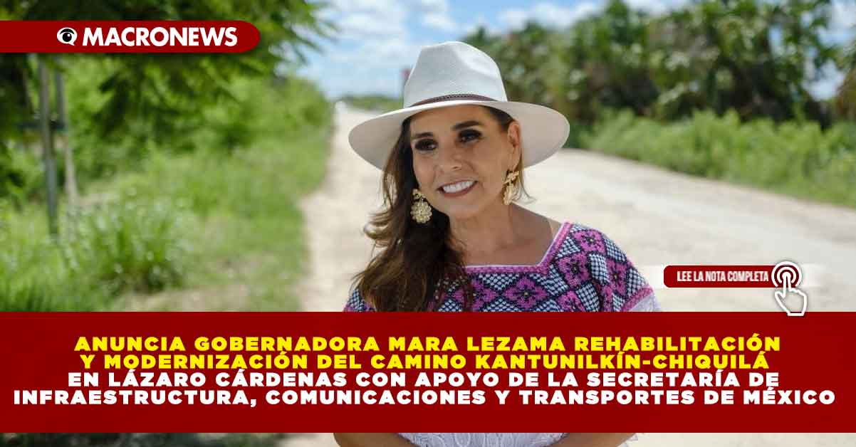 ANUNCIA GOBERNADORA MARA LEZAMA REHABILITACIÓN Y MODERNIZACIÓN DEL CAMINO KANTUNILKÍN-CHIQUILÁ EN LÁZARO CÁRDENAS CON APOYO DE LA SECRETARÍA DE INFRAESTRUCTURA, COMUNICACIONES Y TRANSPORTES DE MÉXICO