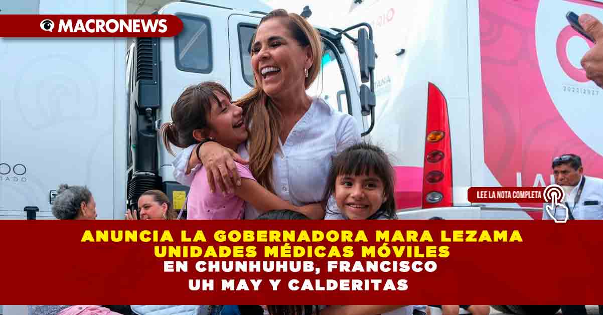 Cancún.- Durante la semana del 29 de enero al 2 de febrero, las unidades médicas móviles del programa “Salud para Tod@s” estarán en Chunhuhub, Felipe Carrillo Puerto; Francisco Uh May, de Tulum; y Calderitas, en Othón P. Blanco ofreciendo servicios gratuitos a quienes no cuentan con algún sistema de salud, informó la gobernadora Mara Lezama Espinosa.