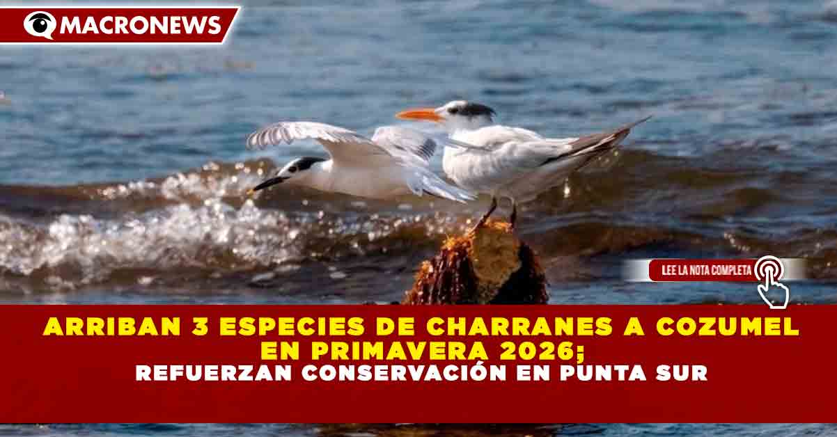 Redacción Macronews.- Con la llegada de la primavera, al menos tres especies de charranes han comenzado a arribar al Parque Ecoturístico Punta Sur, donde encuentran condiciones óptimas para su reproducción, consolidando a este sitio como uno de los principales refugios de aves marinas en el Caribe mexicano.