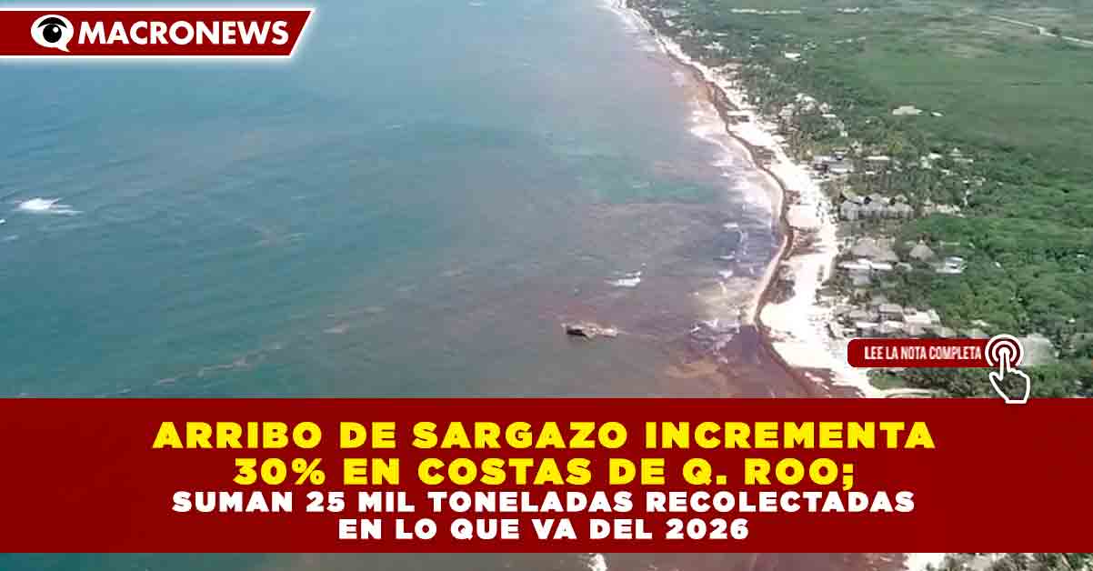 Redacción Macronews por Renan Moguel.- Más de 25 mil toneladas de sargazo se han recolectado en lo que va del año, lo que mantiene el pronóstico de un incremento de entre el 25 y 30% en el arribo de esta macroalga a las costas de Quintana Roo durante 2026, informó Esteban Amaro, coordinador de la Red de Monitoreo de Sargazo de Quintana Roo.