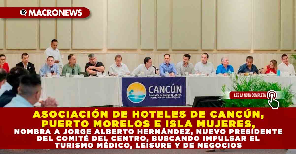 ASOCIACIÓN DE HOTELES DE CANCÚN, PUERTO MORELOS E ISLA MUJERES, NOMBRA A JORGE ALBERTO HERNÁNDEZ, NUEVO PRESIDENTE DEL COMITÉ DEL CENTRO, BUSCANDO IMPULSAR EL TURISMO MÉDICO, LEISURE Y DE NEGOCIOS