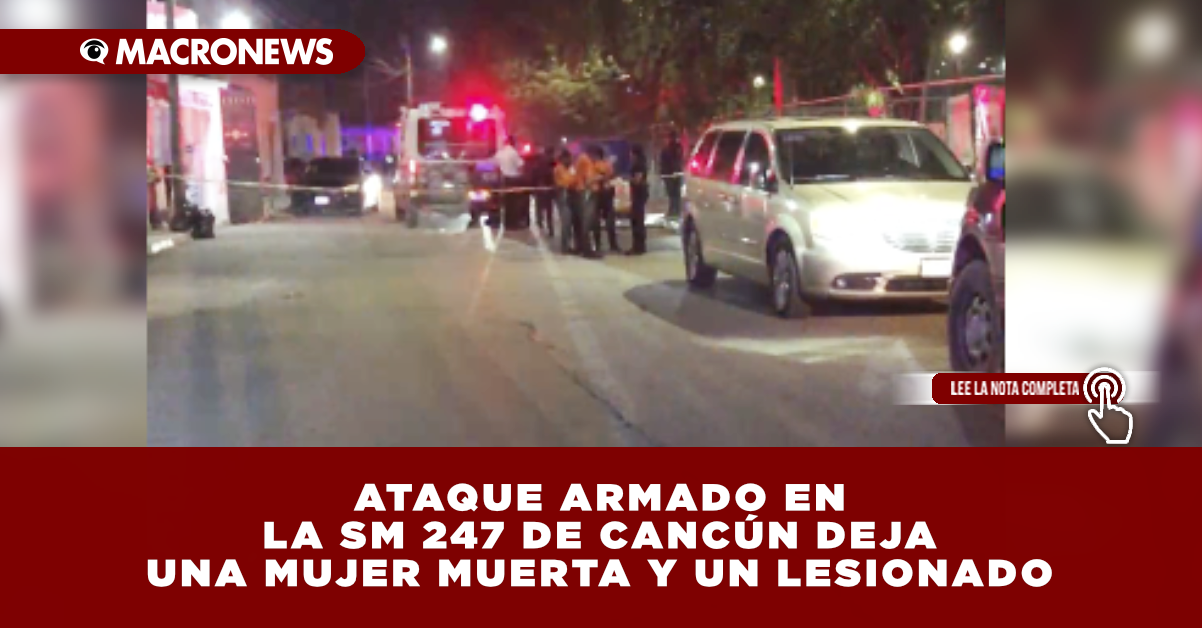 CANCÚN, Q. ROO, 1 de diciembre de 2025. Un ataque armado registrado este lunes en la Supermanzana 247 de Cancún dejó como saldo preliminar a una mujer sin vida y otra persona lesionada por impactos de arma de fuego.