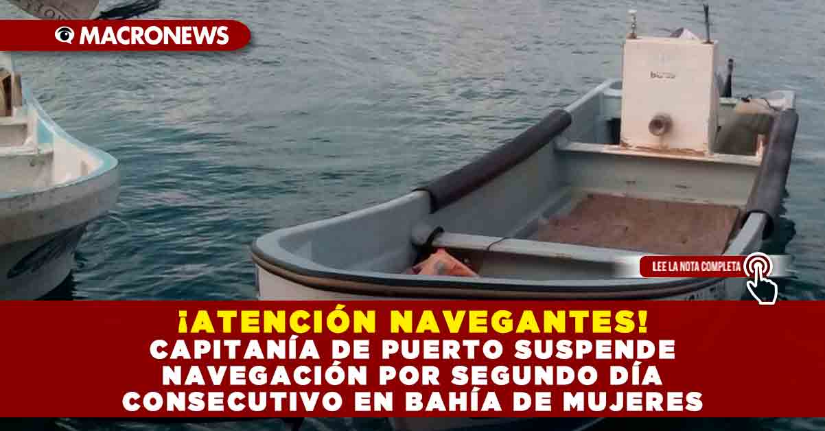 REDACCIÓN MACRONEWS POR RENAN MOGUEL.— Por segundo día consecutivo, la Capitanía de Puerto cerró la navegación a embarcaciones menores y mayores de 40 pies, quedando única y exclusivamente autorizada la navegación a las embarcaciones de pasaje y carga (ferris) dentro de la bahía de Mujeres hasta donde las condiciones meteorológicas lo permitan.