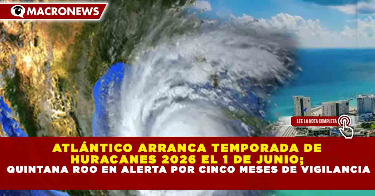 Redacción Macronews.- El Servicio Meteorológico Nacional (SMN) confirmó que la temporada de huracanes 2026 en el Atlántico iniciará oficialmente el 1 de junio, mientras que en el Pacífico mexicano comenzará el 15 de mayo. Quintana Roo entrará en fase de vigilancia constante durante cinco meses, coincidiendo con el periodo de mayor actividad ciclónica de julio a noviembre.