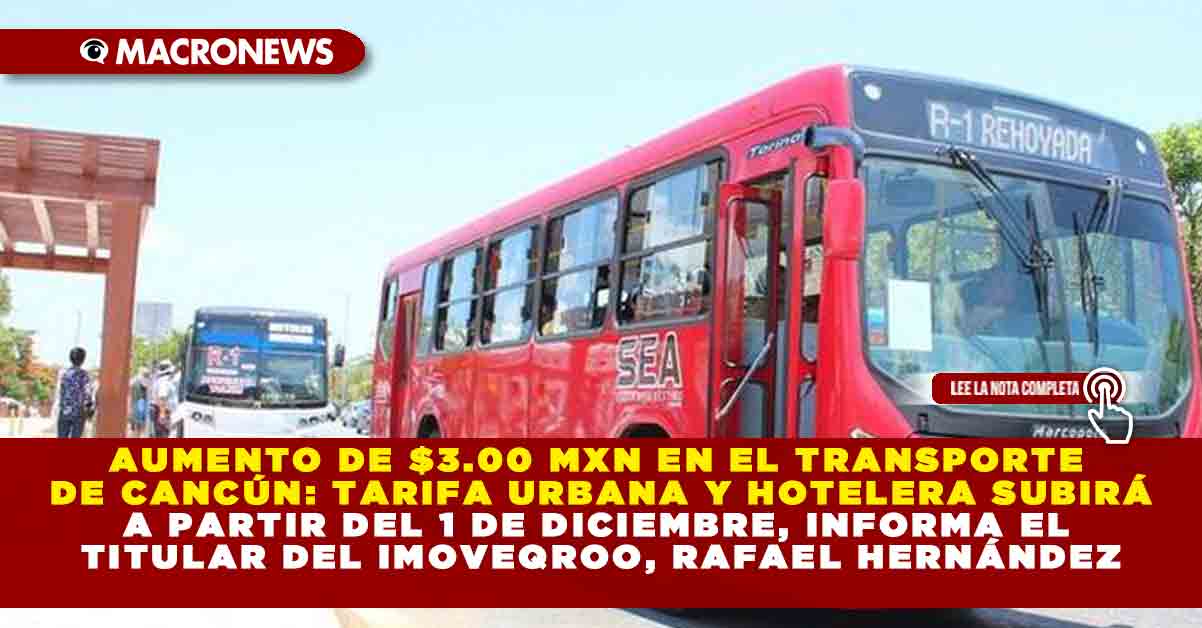 Redacción Macronews.- El Gobierno de Quintana Roo, encabezado por la gobernadora Mara Lezama, ha anunciado una actualización en las tarifas del transporte público de Cancún, que implicará un aumento de 3 pesos tanto para la zona urbana como para la zona hotelera, entrando en vigor a partir del 1 de diciembre. Esta medida se enmarca dentro de la presentación del Sistema de Movilidad del Bienestar (MOBI), un proyecto que busca mejorar la calidad del servicio en el estado.