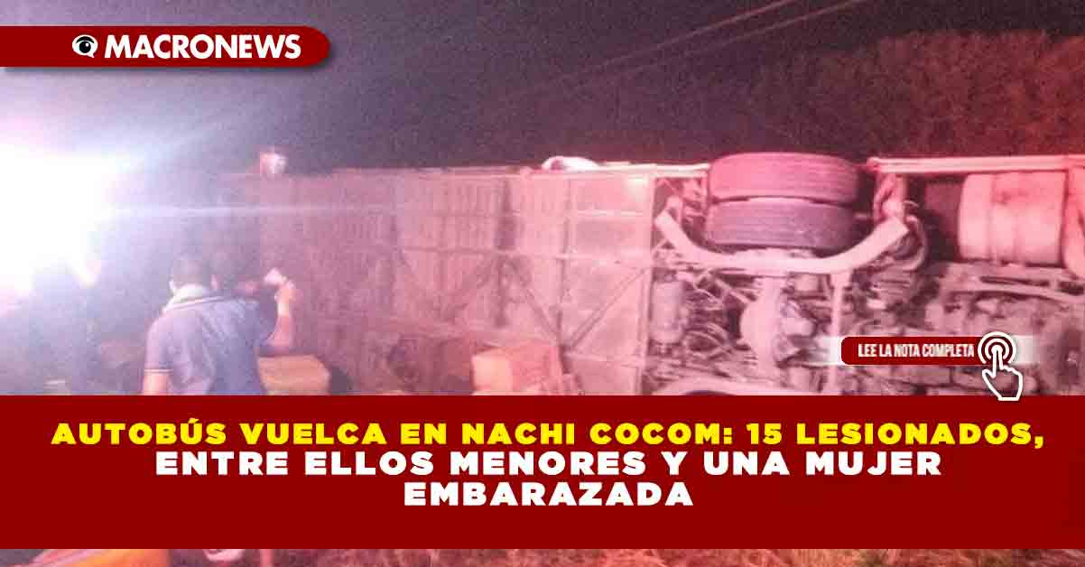 Othón P. Blanco.— Un autobús de pasajeros volcó a la entrada del poblado de Nachi Cocom, dejando al menos 15 personas lesionadas, cinco de ellas en estado grave. La emergencia ocurrió durante las últimas horas del pasado jueves y movilizó de inmediato a paramédicos y rescatistas de la agrupación Rhino, quienes llegaron como primera respuesta.