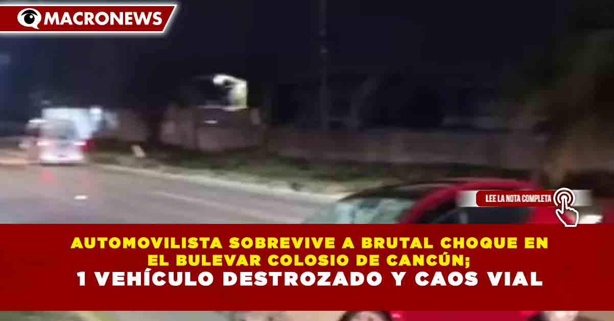 Redacción Macronews.- Un automovilista estuvo a punto de perder la vida tras un fuerte choque registrado en el bulevar Luis Donaldo Colosio, en Cancún, donde un vehículo quedó prácticamente destruido y se reportaron afectaciones viales por varios minutos, según informes preliminares de las autoridades.