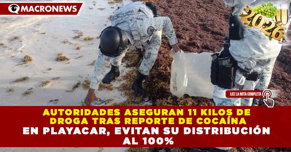 Redacción Macronews.- Autoridades de seguridad lograron el aseguramiento de 11 kilogramos de presunta droga, luego de un reporte ciudadano que alertó sobre el recale de paquetes con características similares a la cocaína en la zona costera de Playacar, en el municipio de Playa del Carmen.