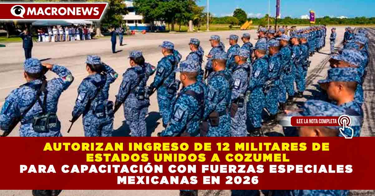 Redacción Macronews.- El Gobierno de México autorizó el ingreso temporal de 12 elementos del Séptimo Grupo de Operaciones Especiales del Comando de Operaciones Especiales Norte de los Estados Unidos de América para participar en actividades de adiestramiento conjunto en Cozumel, Quintana Roo, como parte de los mecanismos de cooperación bilateral en materia de seguridad.