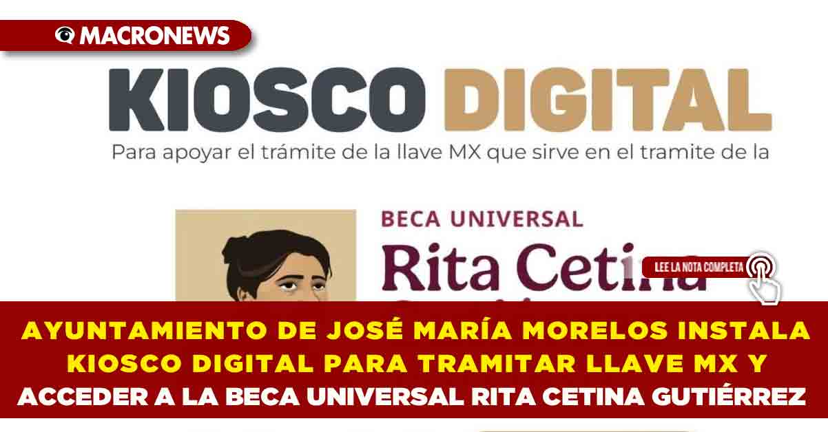 Redacción Macronews.- El Ayuntamiento de José María Morelos ha instalado un Kiosco Digital para asistir a los ciudadanos con el trámite de la Llave MX, un requisito fundamental para acceder a la Beca Universal Rita Cetina Gutiérrez. Este servicio busca facilitar el registro de las familias que deseen ser beneficiarias de esta beca de educación básica.