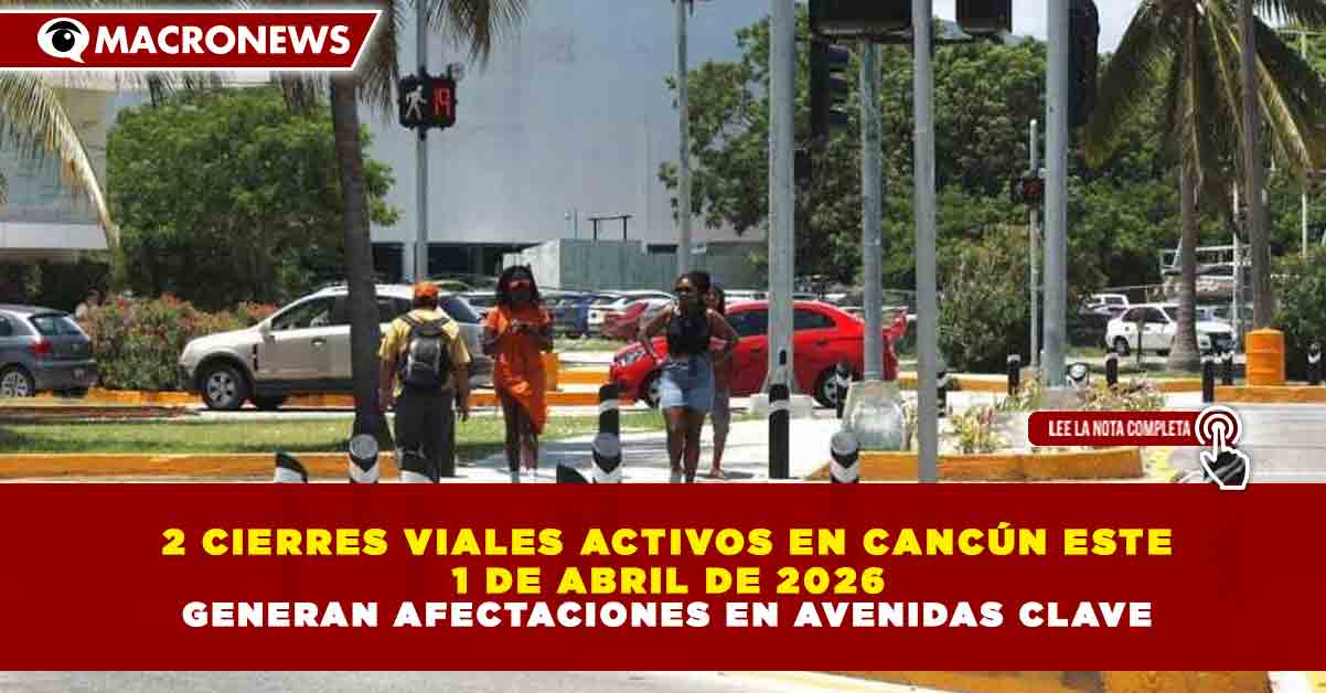 Redacción Macronews.- Este miércoles 1 de abril de 2026, Cancún registra 2 cierres viales activos derivados de trabajos de reparación y obras en la vía pública, lo que impacta la circulación en importantes avenidas de la ciudad.