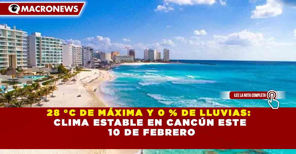Redacción Macronews.- El clima en Cancún para este martes 10 de febrero se mantendrá estable y mayormente soleado, con nubes dispersas, temperaturas agradables y nula probabilidad de lluvias, condiciones favorables tanto para actividades al aire libre como para el sector turístico.