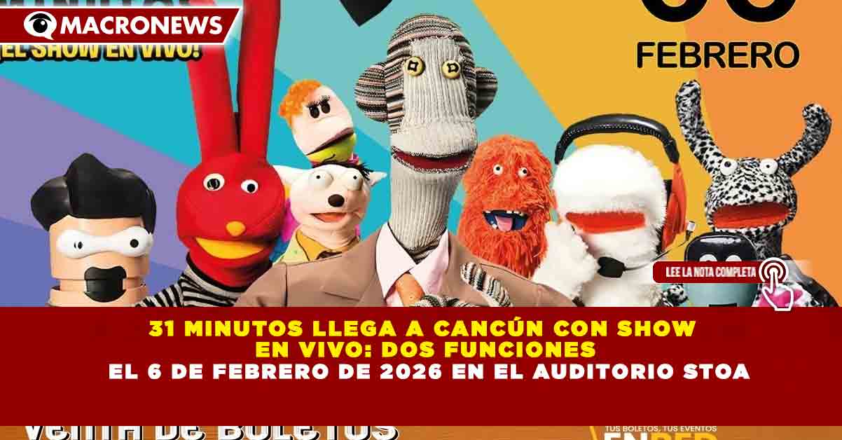 El universo de 31 Minutos llegará a Cancún con un espectáculo oficial en vivo que se presentará el viernes 6 de febrero de 2026, con dos funciones programadas a las 17:00 y 19:30 horas, en el Auditorio STOA, como parte de su gira nacional dirigida a toda la familia.