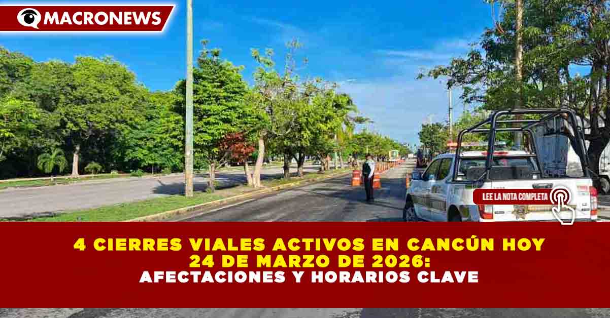 Redacción Macronews.- Al menos cuatro puntos de Cancún presentan cierres parciales y totales este martes 24 de marzo de 2026 debido a trabajos de reparación y obras en la vía pública, lo que genera afectaciones en la movilidad de la ciudad.