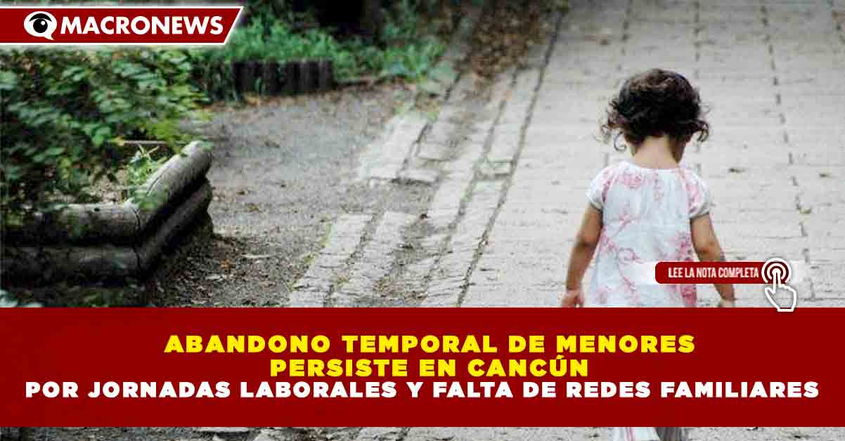 Redacción Macronews.- En Cancún, el abandono temporal de niñas y niños continúa siendo una problemática social vigente, estrechamente relacionada con largas jornadas laborales, la falta de redes familiares y el acelerado crecimiento urbano, advirtieron especialistas.