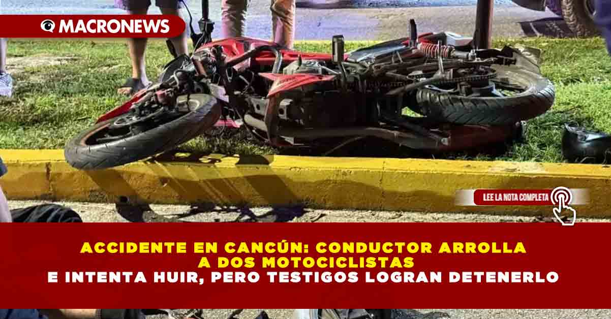 Un accidente vial ocurrido en Cancún dejó a dos motociclistas lesionados y a un conductor detenido gracias a la intervención de testigos.