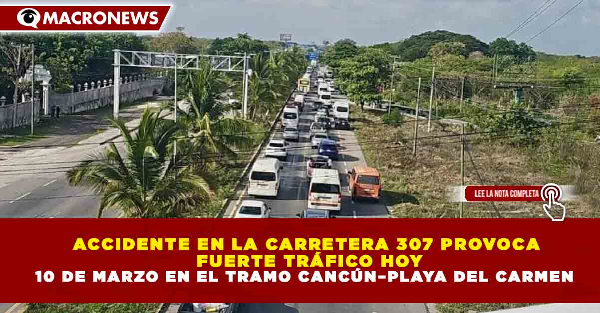 Redacción Macronews.- Un accidente de tránsito registrado la mañana de este martes 10 de marzo de 2026 sobre la Carretera Federal 307, en el tramo Cancún–Playa del Carmen, provocó intensa carga vehicular a la altura del parque Crococun, en dirección al sur.