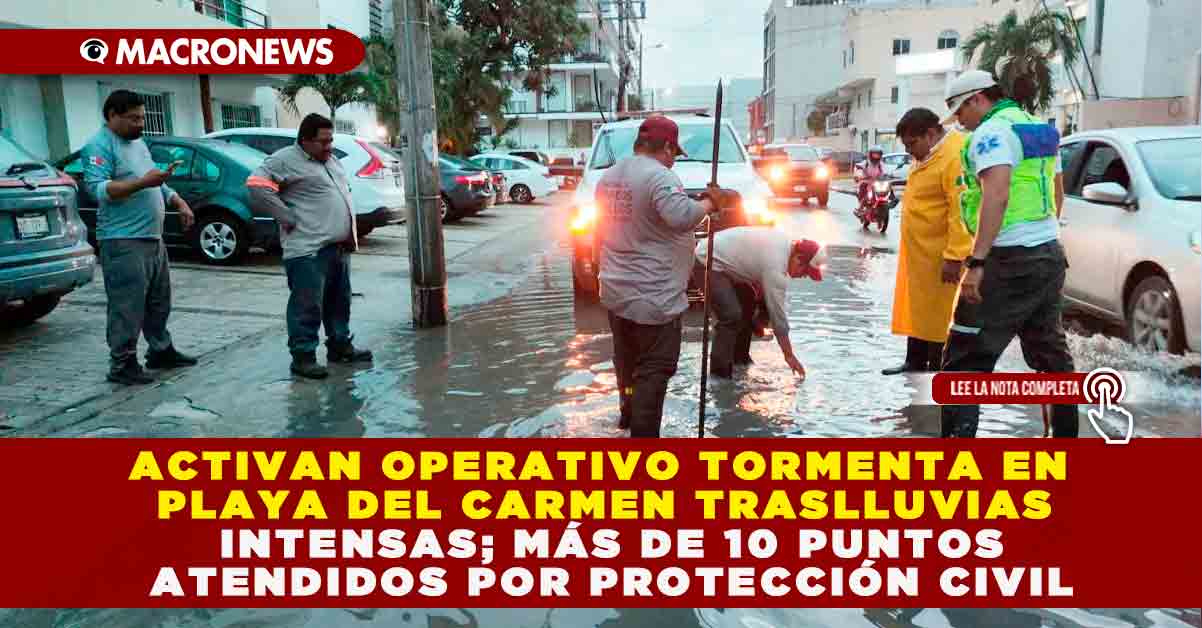 Redacción Macronews.- Playa del Carmen, Quintana Roo, 6 de noviembre de 2025.— En respuesta inmediata a las lluvias registradas durante la noche y madrugada de este jueves, el gobierno municipal activó el Operativo Tormenta, instruido por la presidenta Estefanía Mercado. La Secretaría de Protección Civil, Prevención de Riesgos y Bomberos, en coordinación con la Secretaría de Servicios Públicos Municipales, realizó recorridos en más de 10 puntos críticos de la ciudad para atender encharcamientos, limpiar rejillas y verificar niveles de agua en zonas de riesgo.