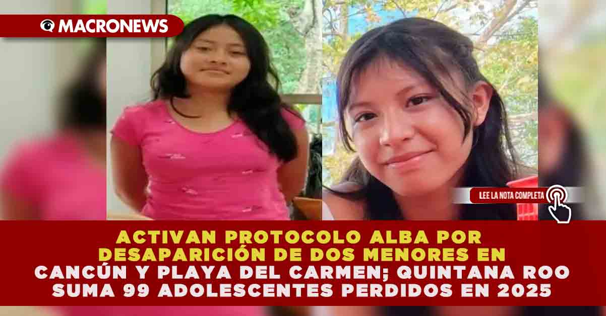 Redacción Macronews.- Autoridades de Quintana Roo activaron el Protocolo Alba tras la desaparición de dos adolescentes de 14 años en distintos municipios del estado. Se trata de Katherine Rueda de León Ruiz, vista por última vez el 6 de noviembre en Cancún, y Maryi Yareth Cruz Córdova, reportada como desaparecida el 18 de noviembre en Playa del Carmen. Con estos casos, la entidad acumula 99 menores desaparecidos en lo que va del 2025, de los cuales 54 son mujeres y 45 hombres, manteniendo a las adolescentes como el grupo más vulnerable.