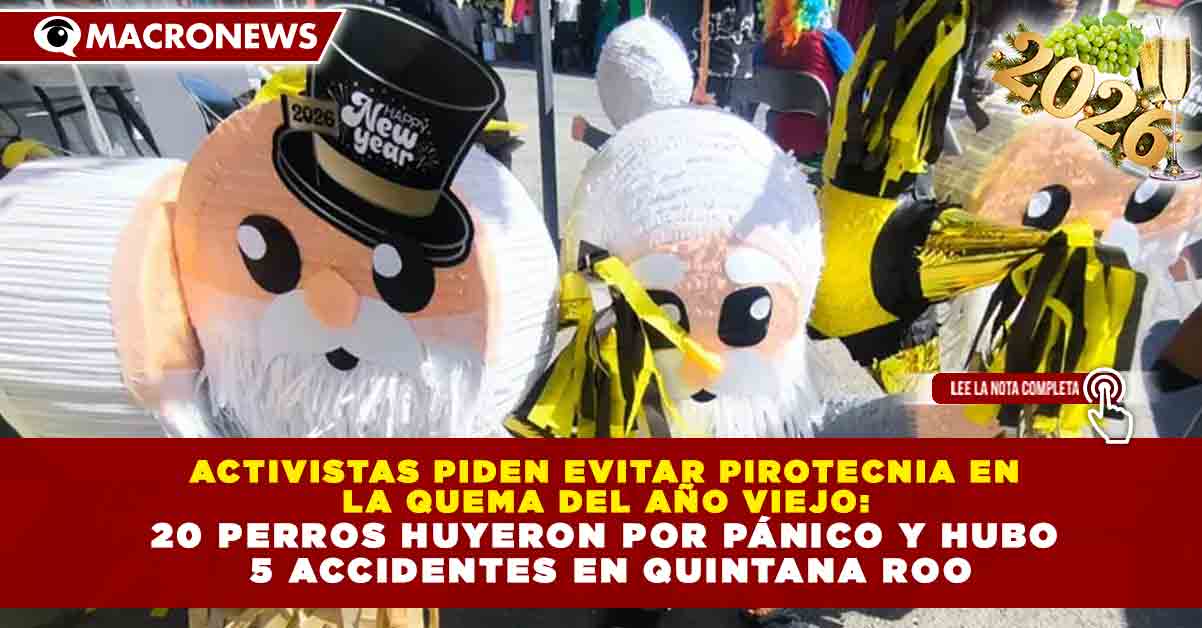 Redacción Macronews.- Agrupaciones activistas animalistas hicieron un llamado urgente a la población para que este 31 de diciembre no introduzcan pirotecnia dentro de las figuras del Año Viejo que tradicionalmente se queman, al advertir que su uso ha provocado al menos cinco accidentes entre niños y adultos en Quintana Roo durante las fiestas decembrinas, además de generar pánico en mascotas y un aumento en el número de animales extraviados.