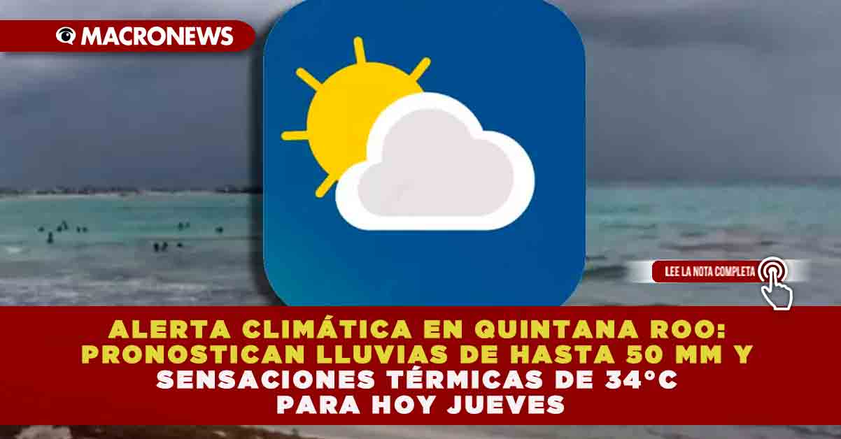 Alerta climática en Quintana Roo: Pronostican lluvias de hasta 50 mm y sensaciones térmicas de 34°C para este jueves