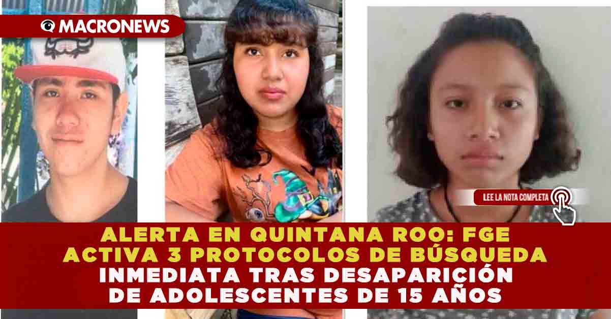Redacción Macronews.– La Fiscalía General del Estado (FGE) de Quintana Roo ha emitido una alerta máxima en tres municipios de la entidad tras confirmarse la desaparición de tres adolescentes, todos de 15 años de edad. Ante el riesgo que representa la ausencia de los menores, las autoridades han activado el 100% de los protocolos de localización, incluyendo Alerta Amber y Protocolo Alba, para intensificar los operativos de búsqueda en las zonas norte, centro y sur del estado, solicitando la colaboración urgente del 100% de la ciudadanía para aportar cualquier dato relevante.