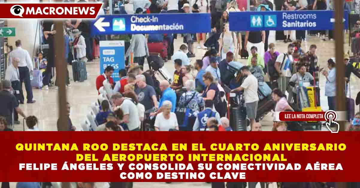 Redacción Macronews.- En el marco del cuarto aniversario del Aeropuerto Internacional Felipe Ángeles (AIFA), Quintana Roo se posiciona como uno de los destinos estratégicos en materia de conectividad aérea, consolidando su papel en el turismo nacional e internacional gracias al incremento de rutas y flujo de pasajeros.