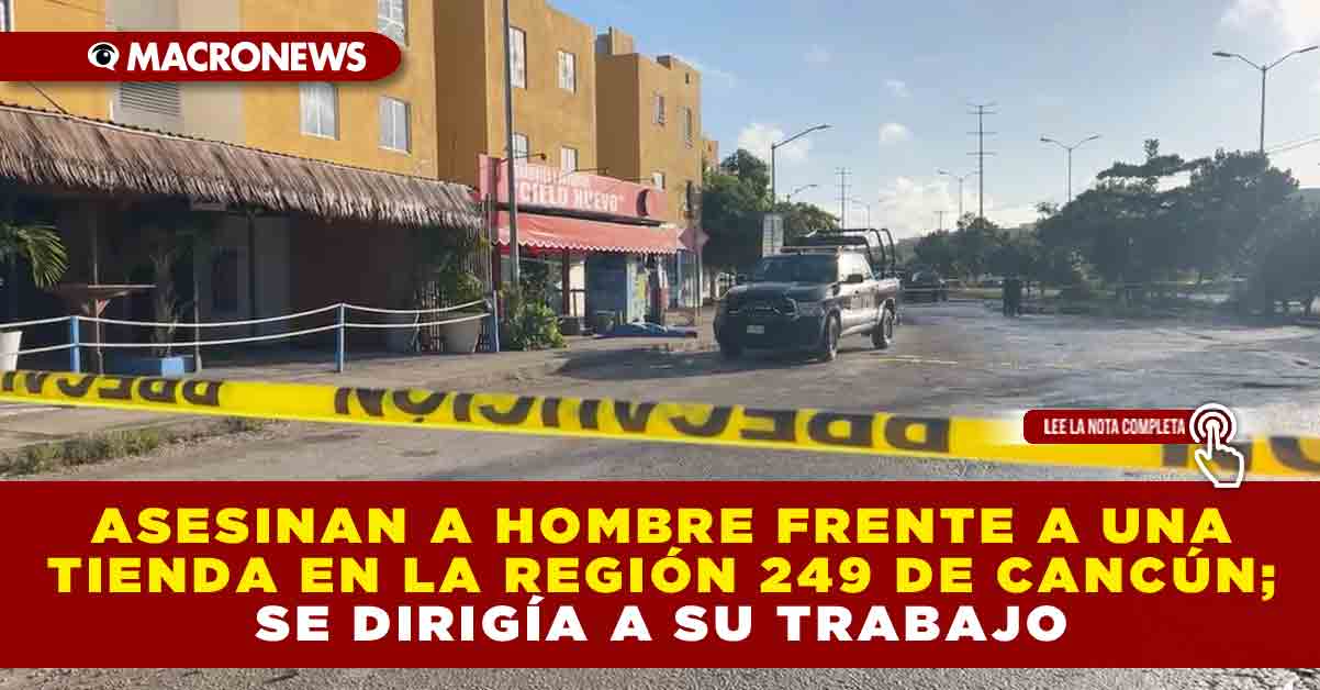 Redacción Macronews.- La mañana de este martes 28 de octubre, un hombre fue asesinado a balazos frente a una tienda en la Región 249 de Cancún, desatando una fuerte movilización policial en la zona norte de la ciudad.